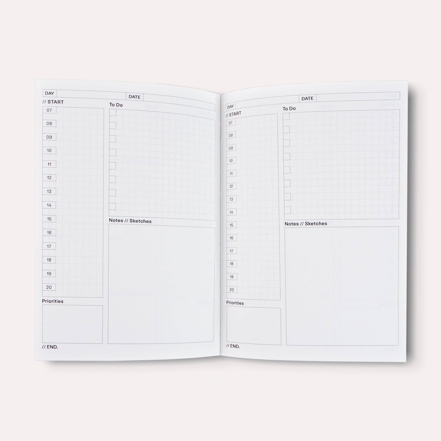 This undated daily planner features the graphic Beams print, a classic, colourful design that adds structure and energy to any workspace. With 320 undated pages and a layflat binding, it’s designed for flexible planning, spontaneous lists, and getting it all down, no matter the day.