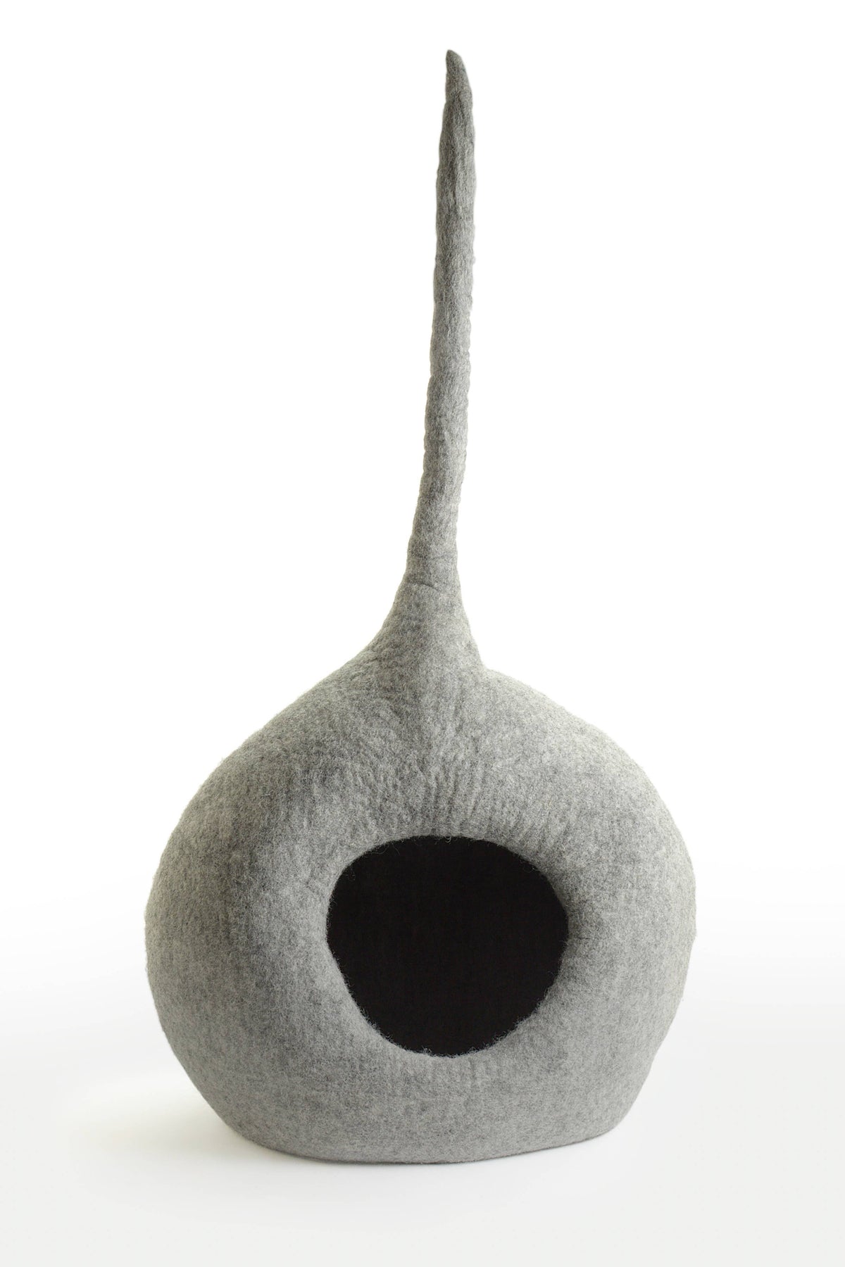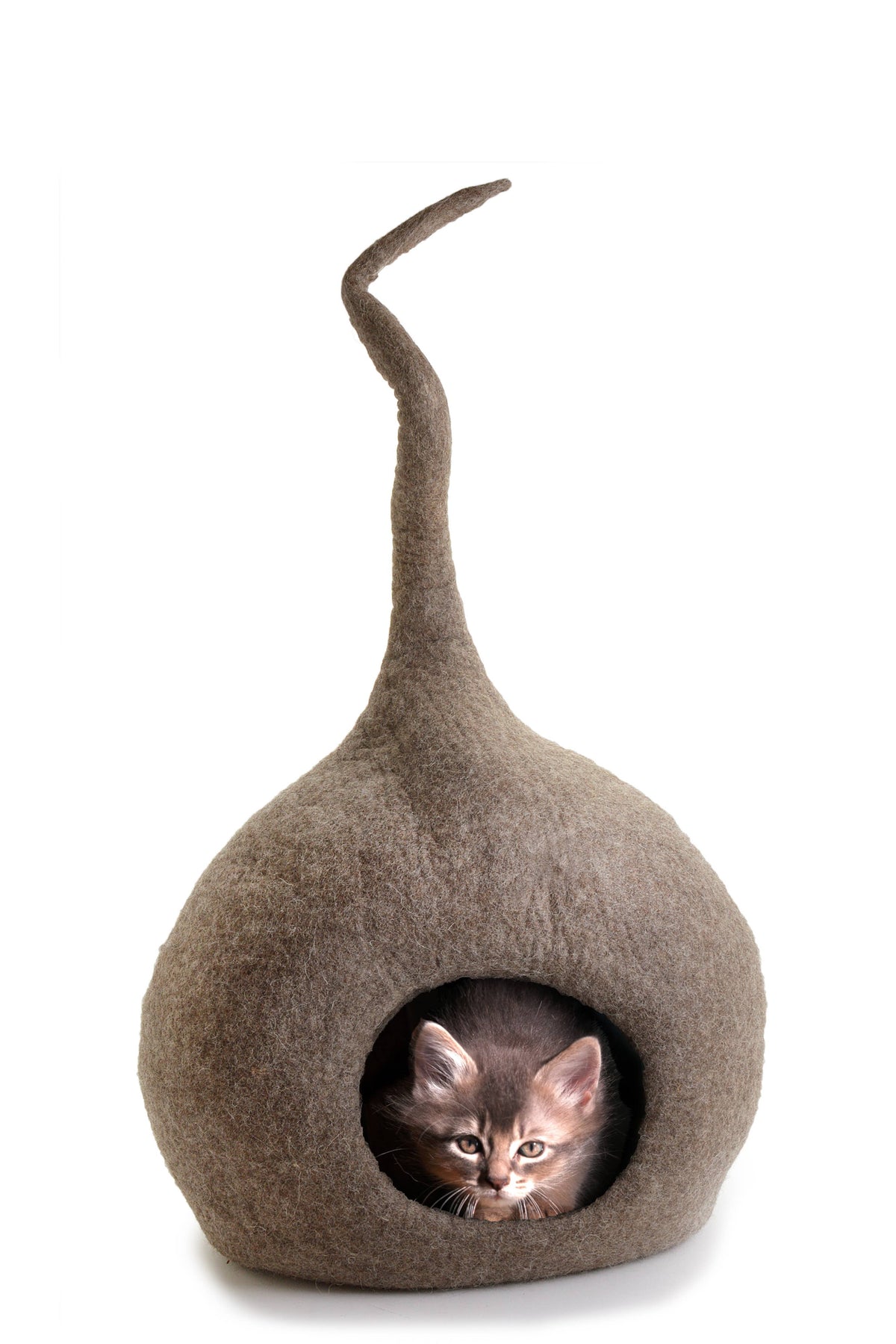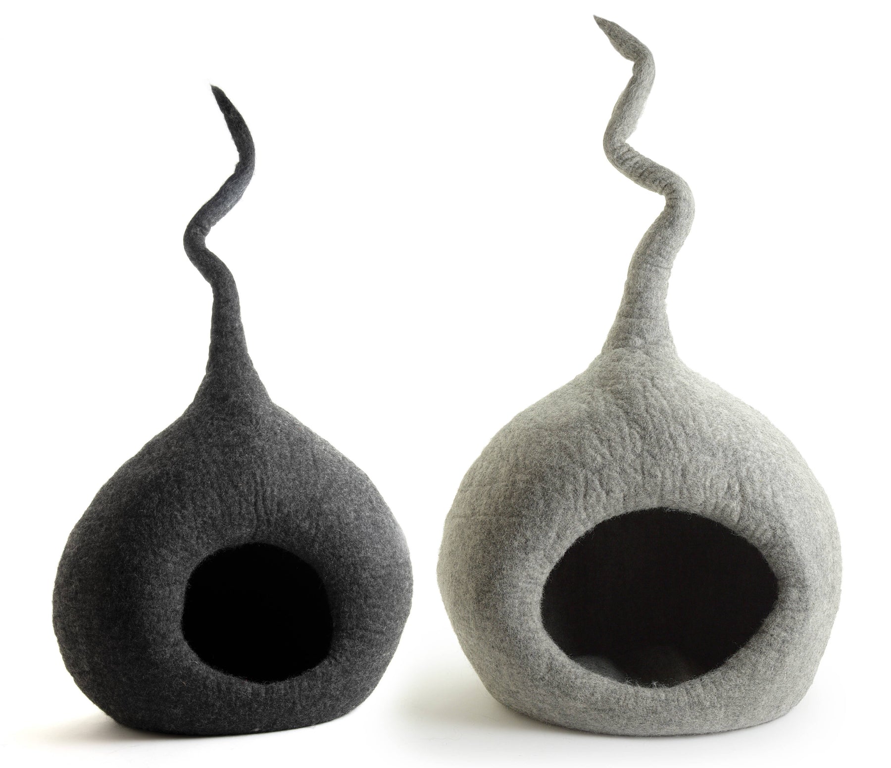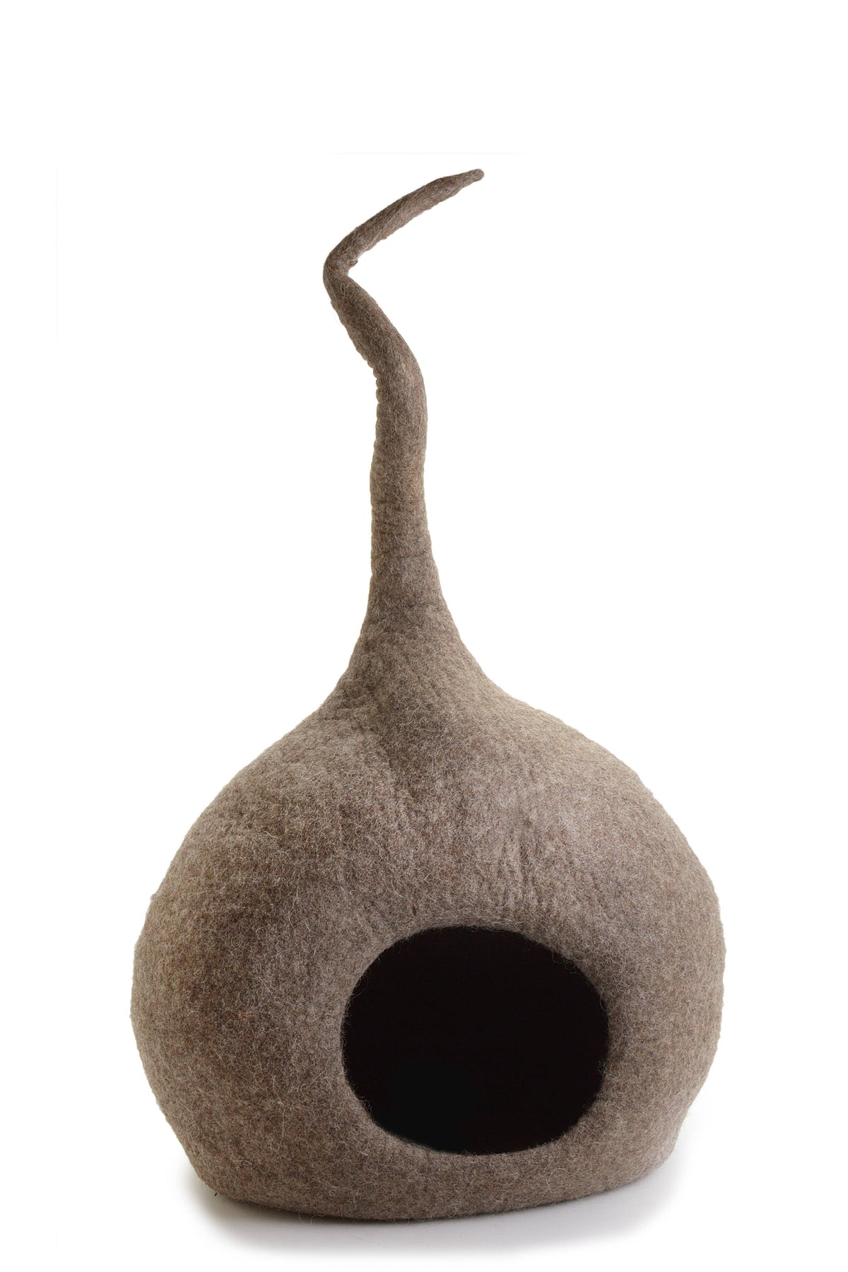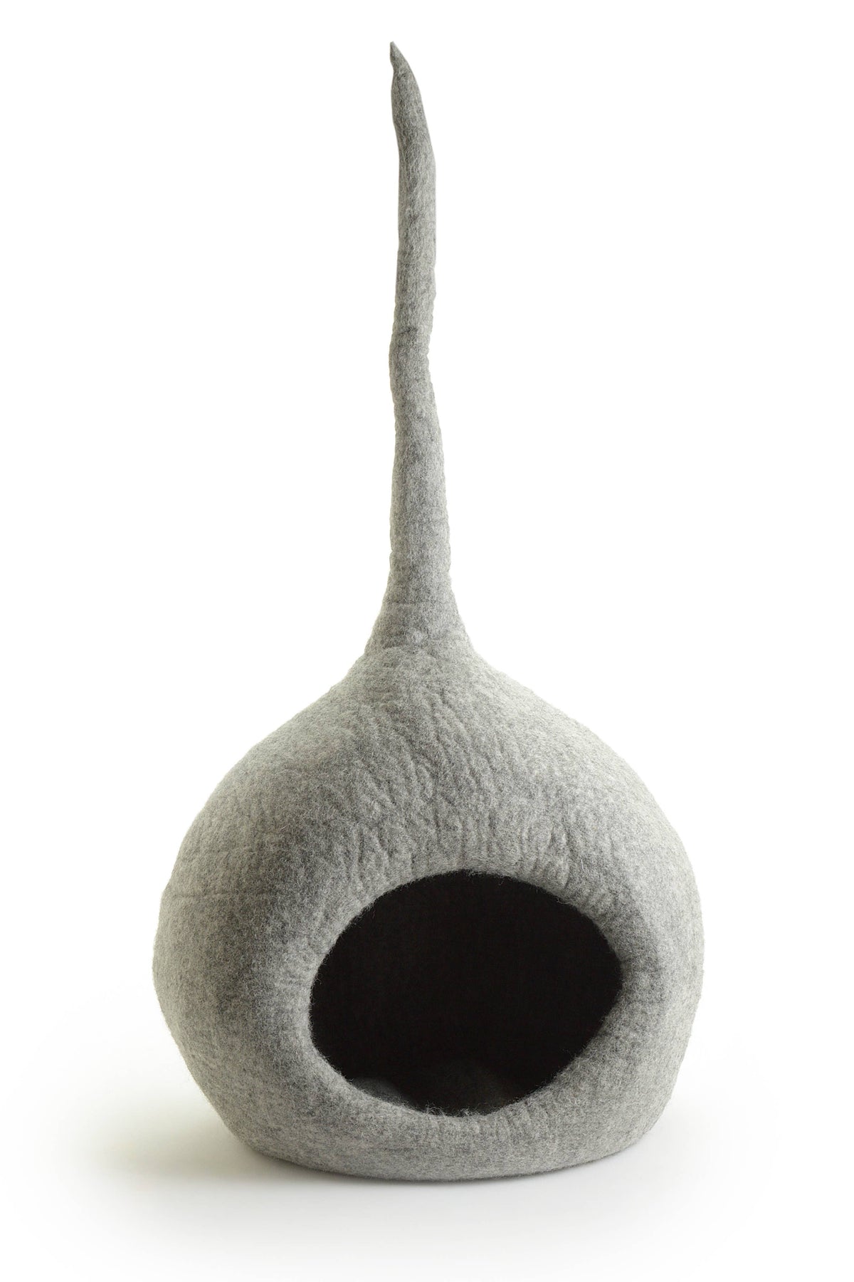 These handcrafted wool baskets provide a cozy space for cats and small dogs to destress and sleep. The thick, rugged premium blend of Himalayan and New Zealand wools holds up to kitty scratches and vigorous play (as well as machine washing!) without flopping or losing shape. Every Dharma Dog Karma Cat Wool bed is handcrafted by Nepali women artisans giving you a striking modern design while providing great wages and Fair Trade protection - so, you can feel good about helping hard working women, while enjoying the best felted wool cat cave available.