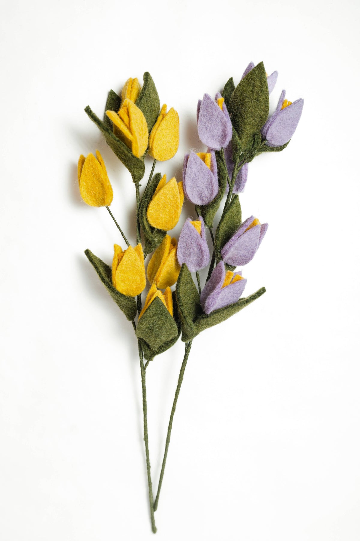 These stunning hand felted flowers are crafted using natural fibers and eco-friendly materials. They can be bundled together or styled alone for a minimal statement. These forever flowers include a wire stem that offers stability and can be displayed in a tall vase. Each flower is handmade by woman artisans in Nepal. SRB has partnered with these artisans in effort to build sustainable livelihoods in remote regions.