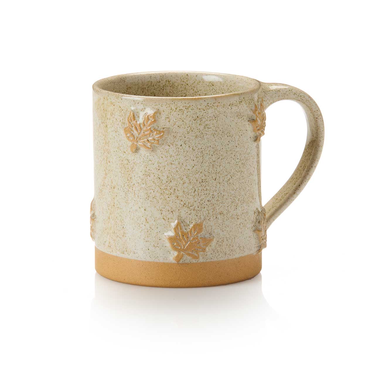 Crafted from natural ceramic, this textured mug features a maple leaf motif and is glazed with speckled white for an earthy look. Looks especially elegant while being very functional!