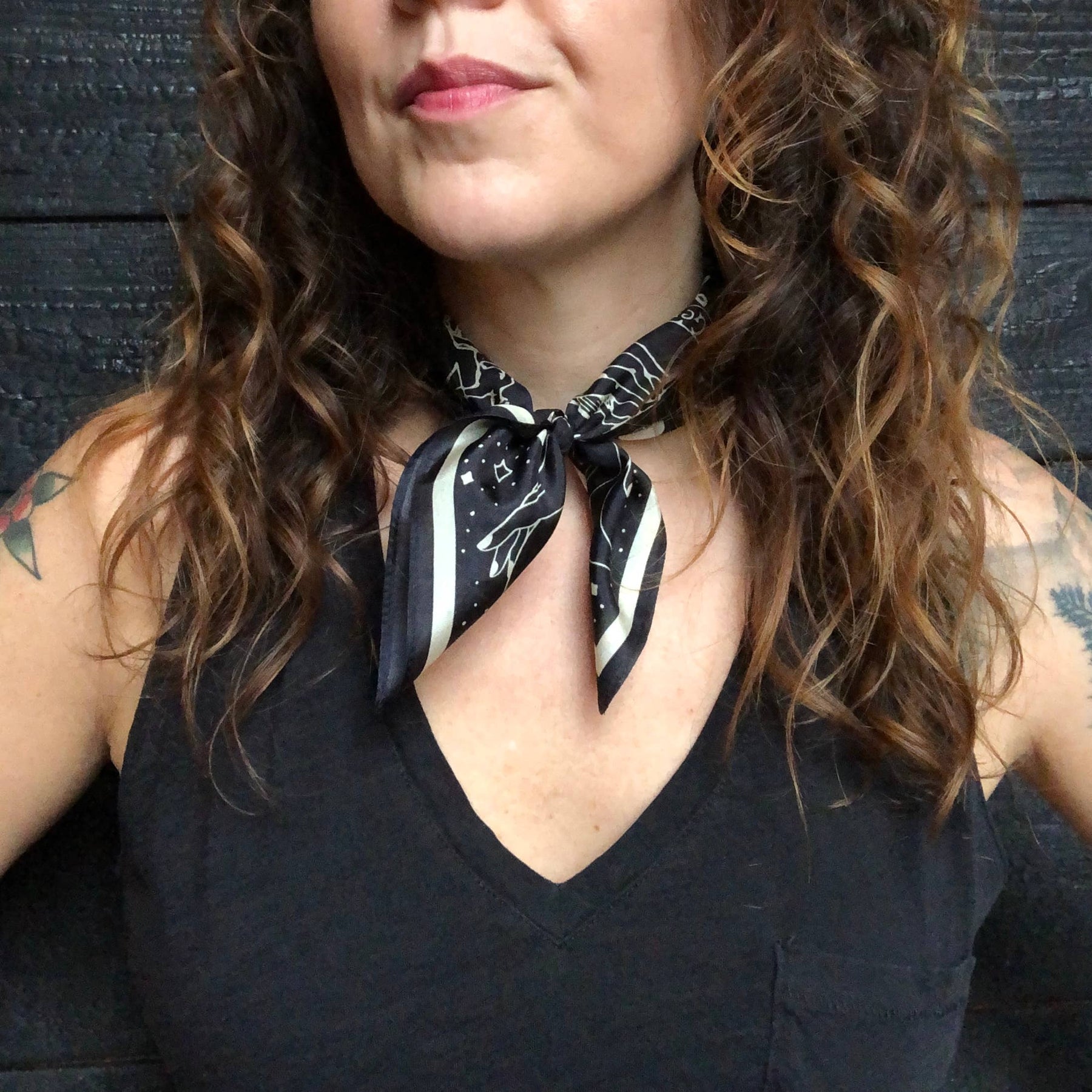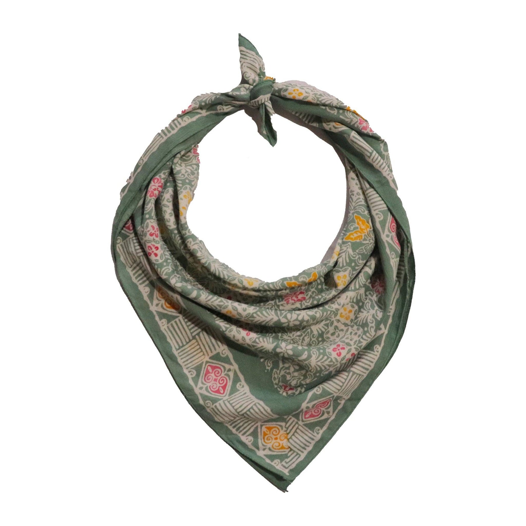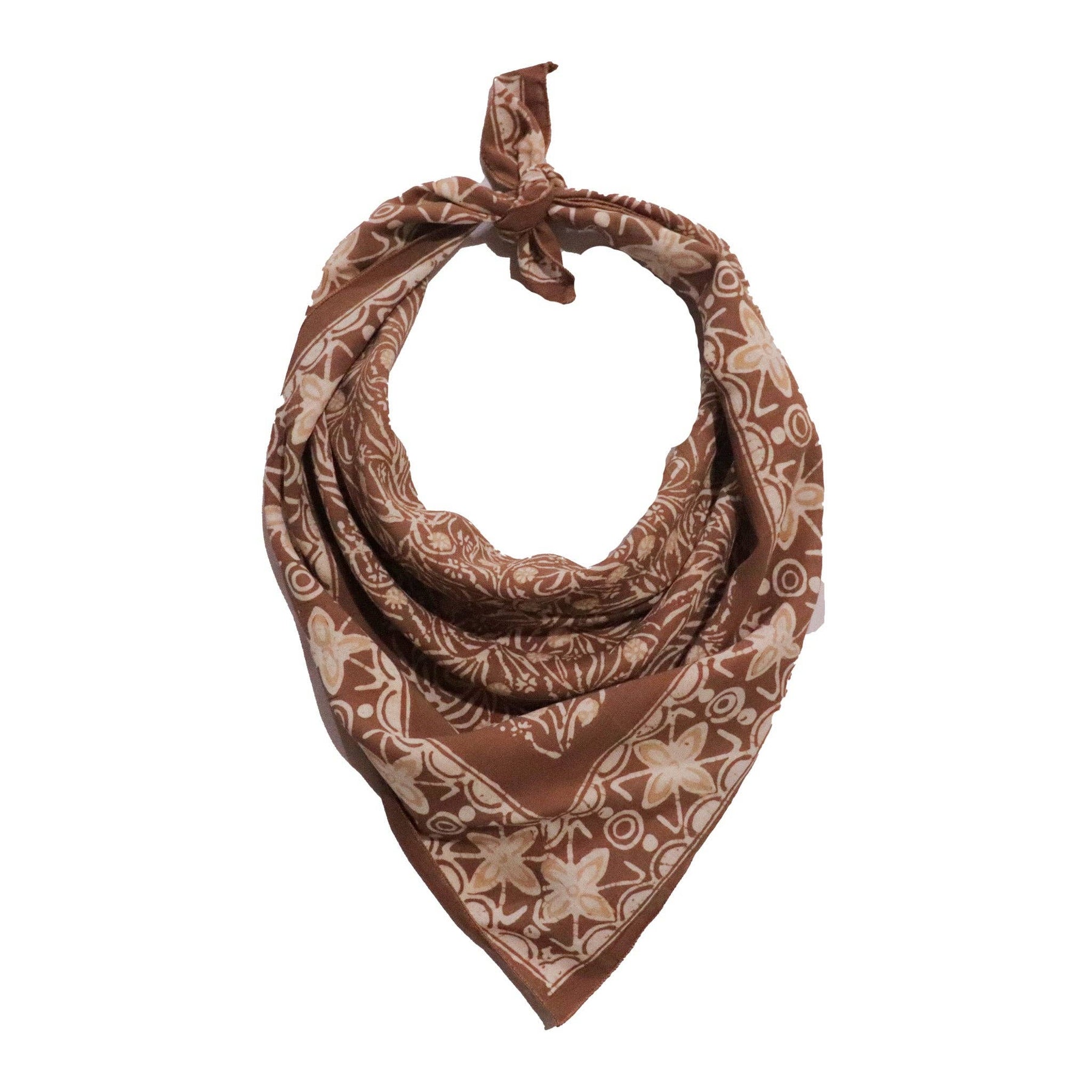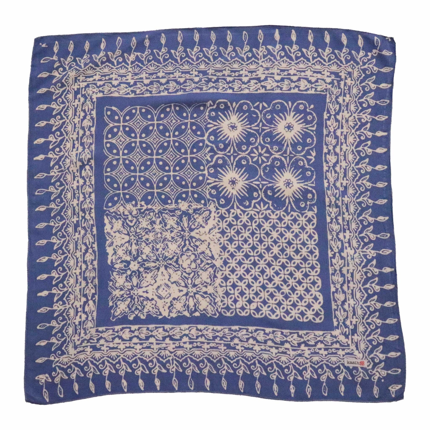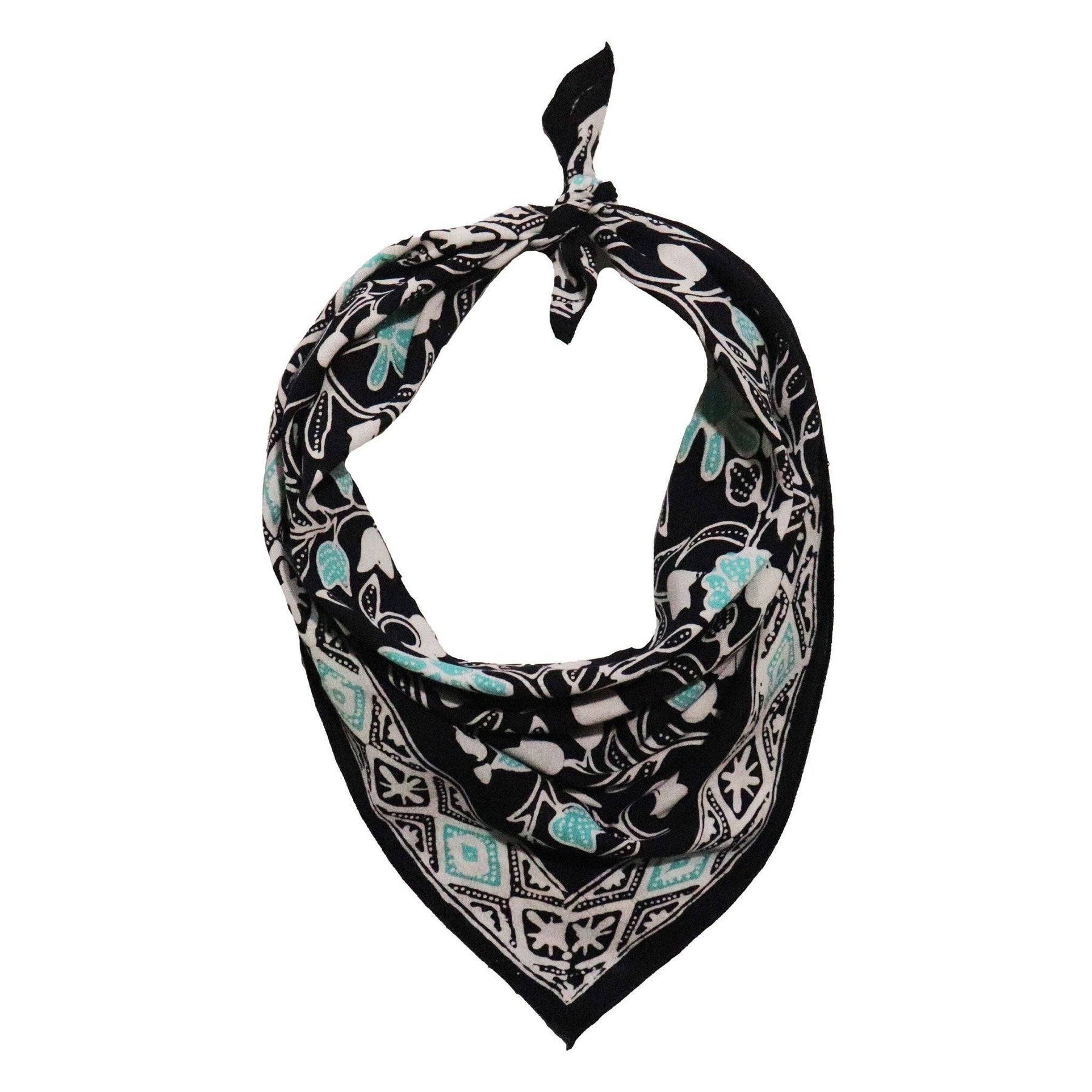 The smaller scarves are 17"x17" in size, perfect for tying around the neck, ponytail, or accessorizing a bag.