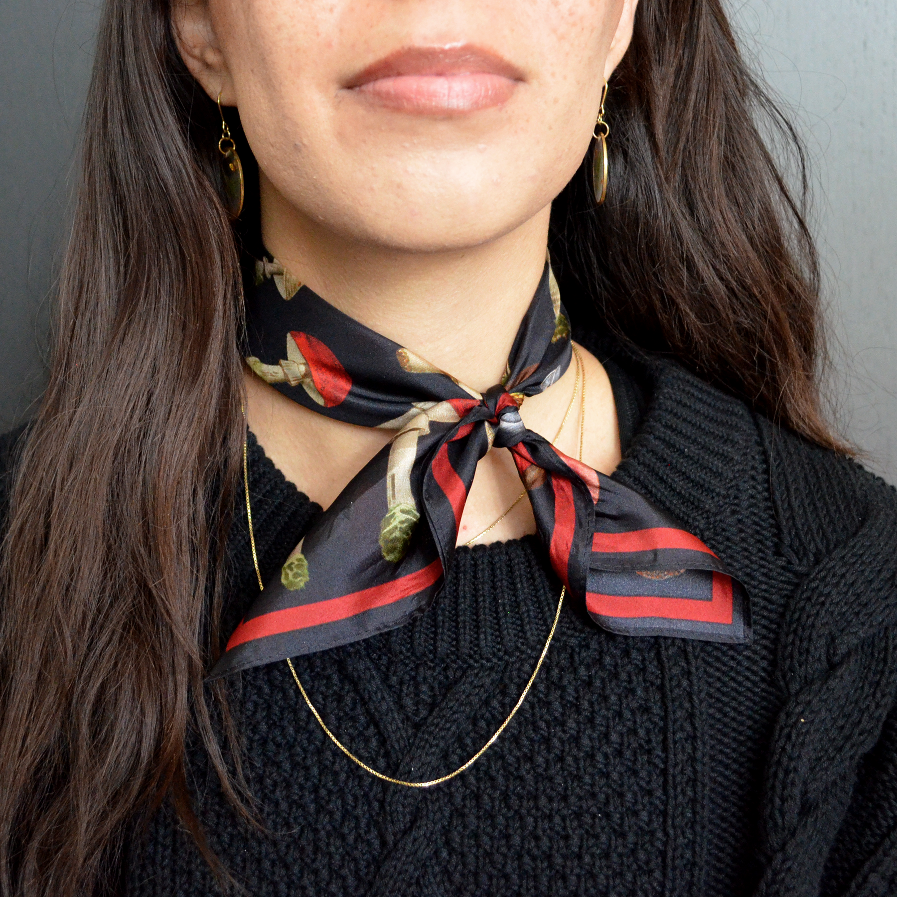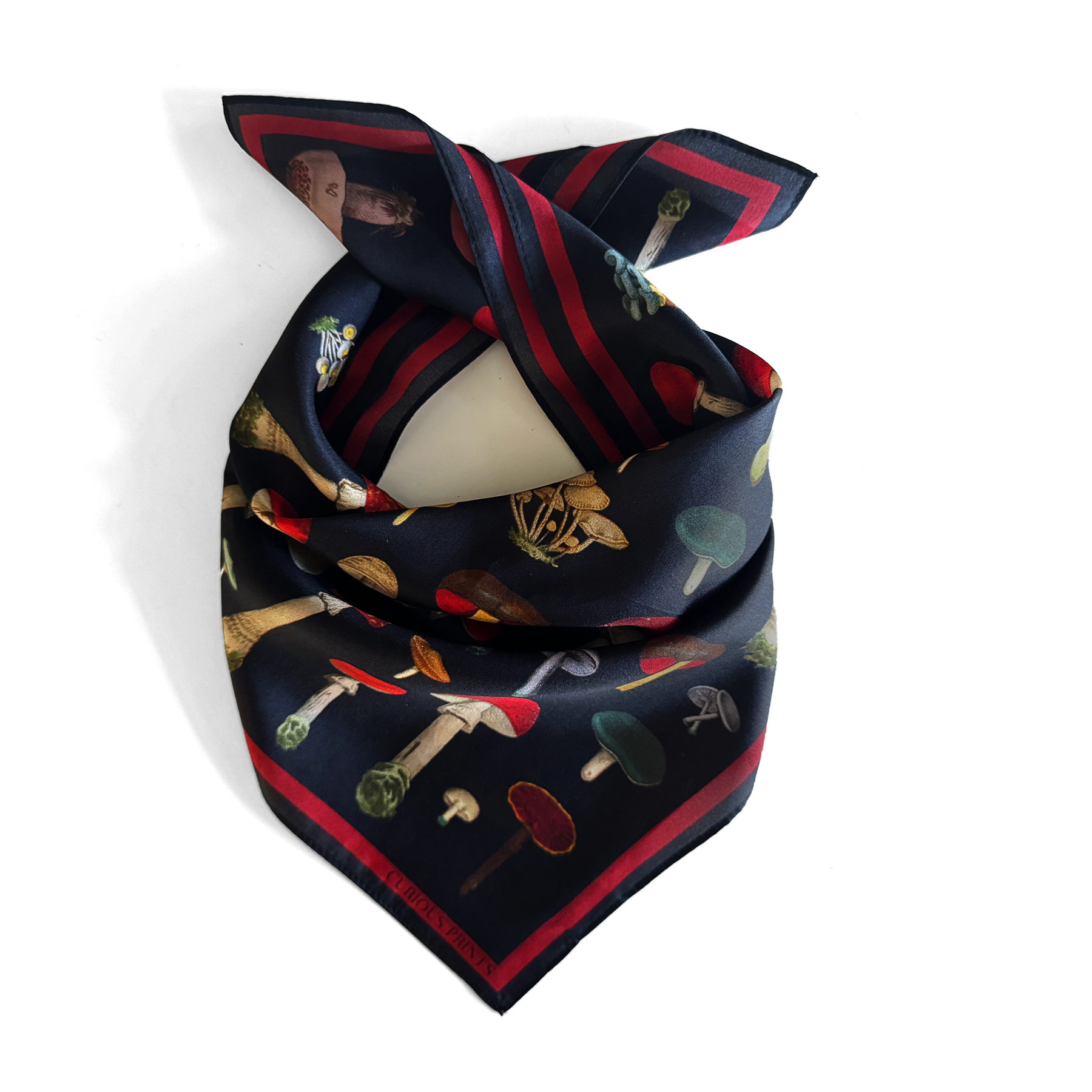Our silk scarves are designed using vintage botanical illustrations. The custom pattern is printed on 100% silk habotai fabric and finished into a lovely small square scarf by hand. These scarves are light and airy and the special print process allows the print to be seen through both sides of the scarf. The print is permanent and will never fade with use or washing.