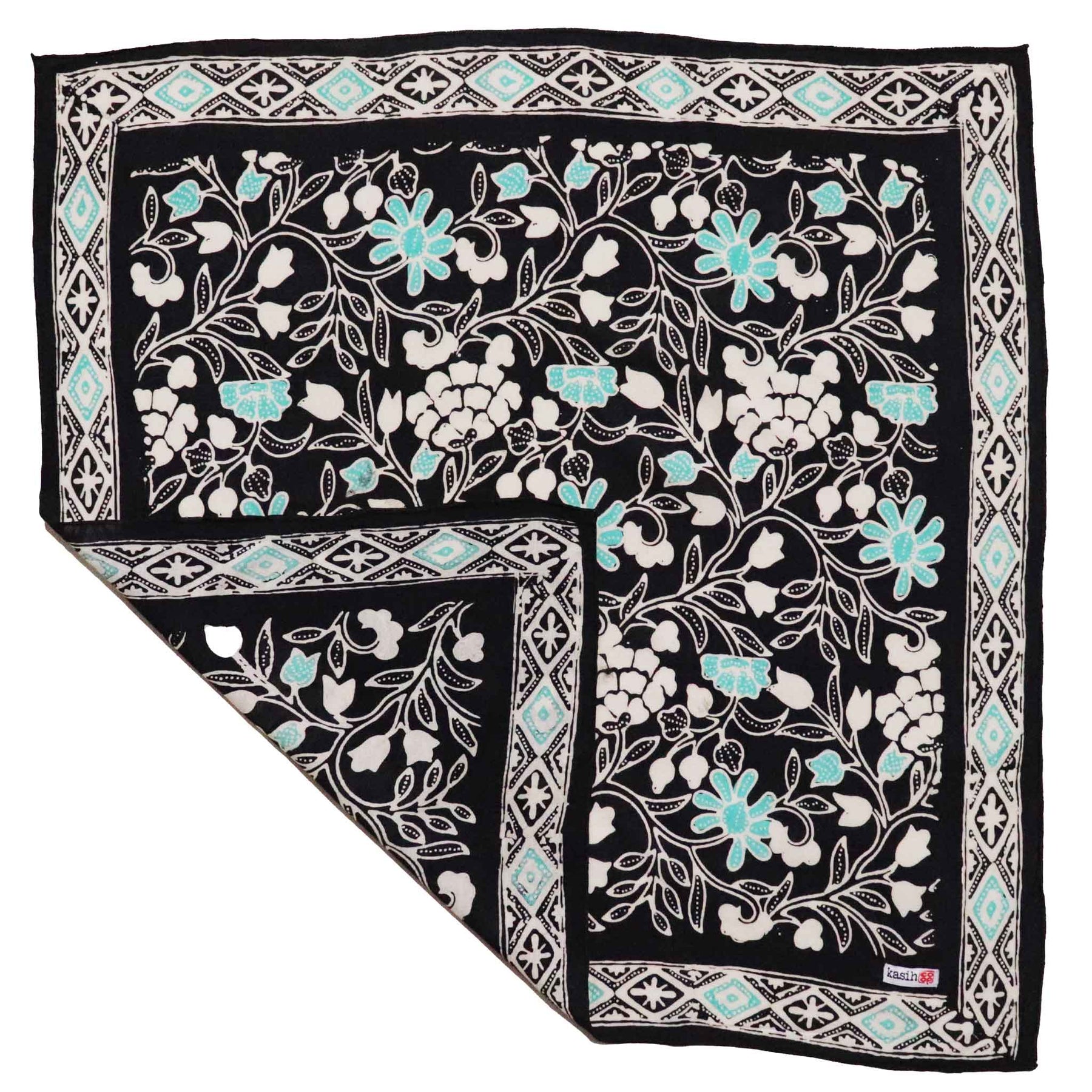 Larger 35"x35" size can also be accessorized around the neck, used as a head wrap, festival top, hung as a wall tapestry or an altar cloth.