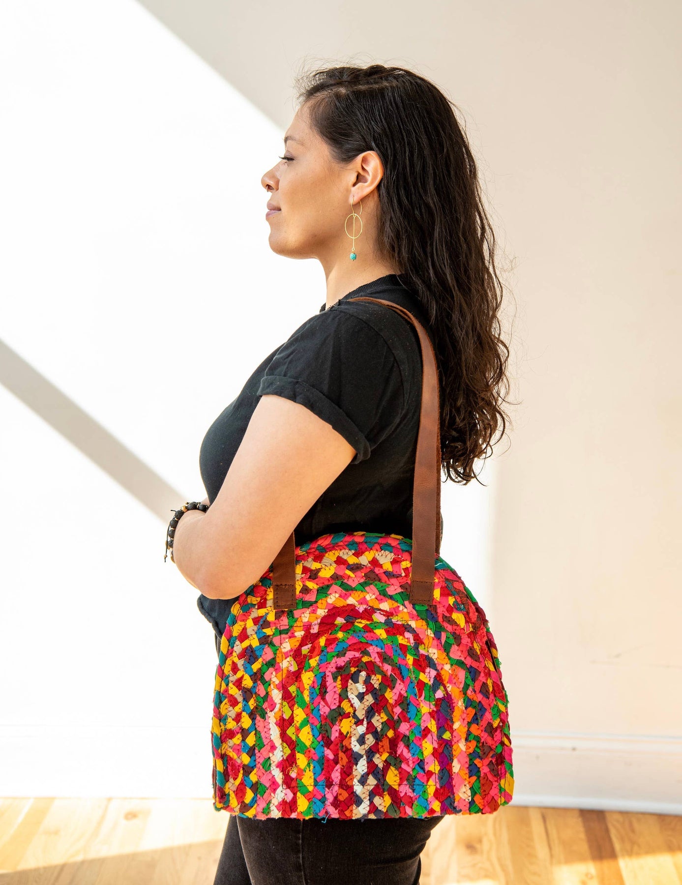 This vibrant, hand-woven tote is the perfect fusion of style and practicality. Crafted with intricate care, the bright, bold colors make a statement wherever you go, while the strong aluminum handles offer durability and a sleek, modern touch. Designed to carry everything you need, this spacious tote effortlessly combines form and function. Whether you're heading to the beach, running errands, or going for a day out, this tote is ready to handle it all with ease. Lightweight yet sturdy, it’s the ultimate accessory for any occasion.