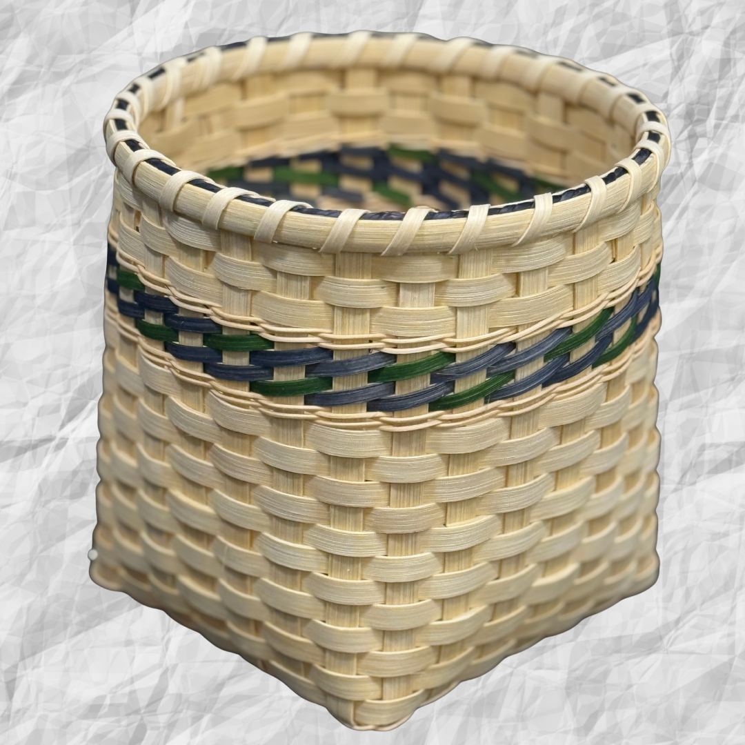 Join us for this hands-on workshop to create a beautiful and functional basket featuring colorful French randing accents. Use this basket as a holder for houseplants or as a wastebasket.