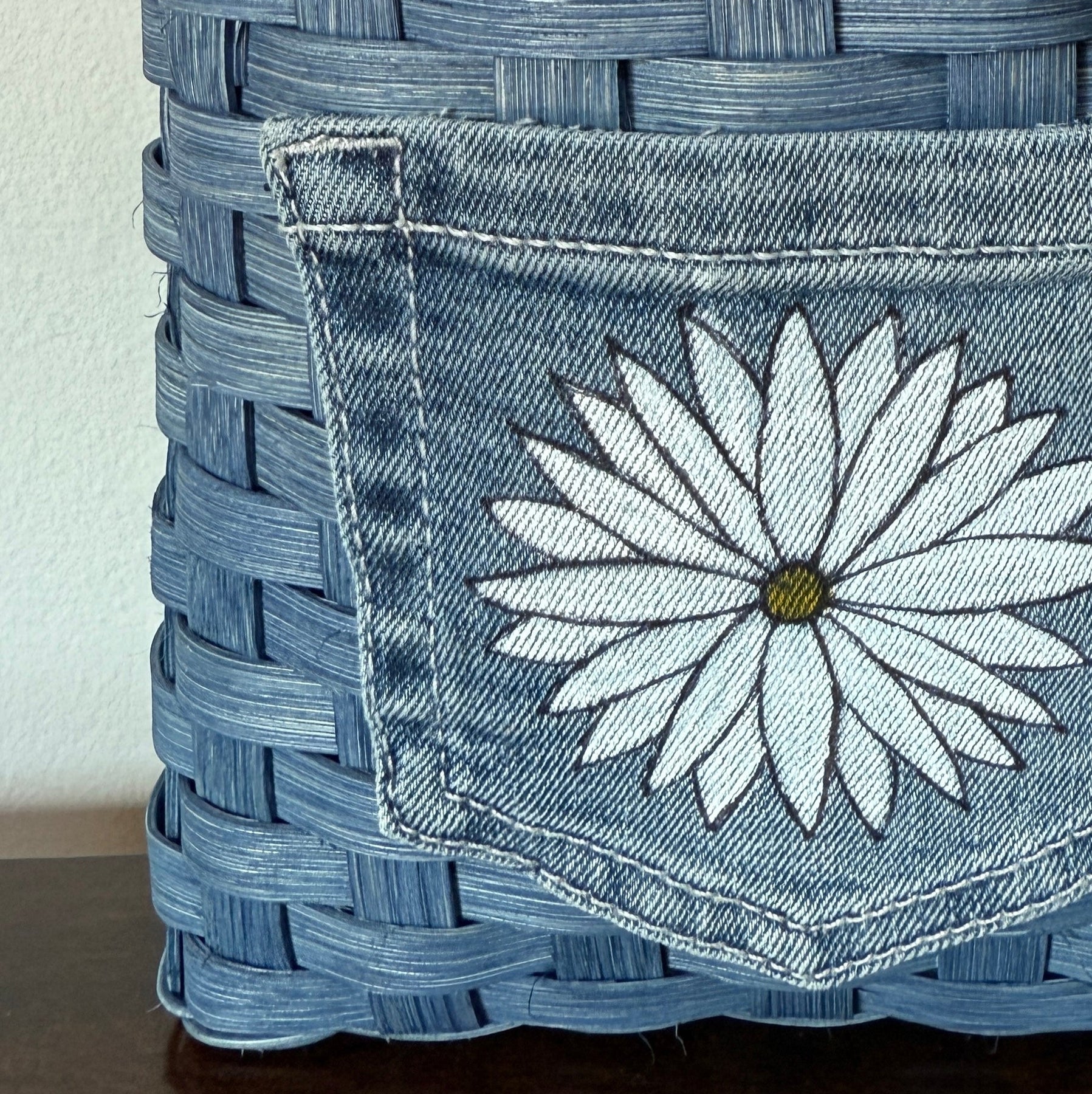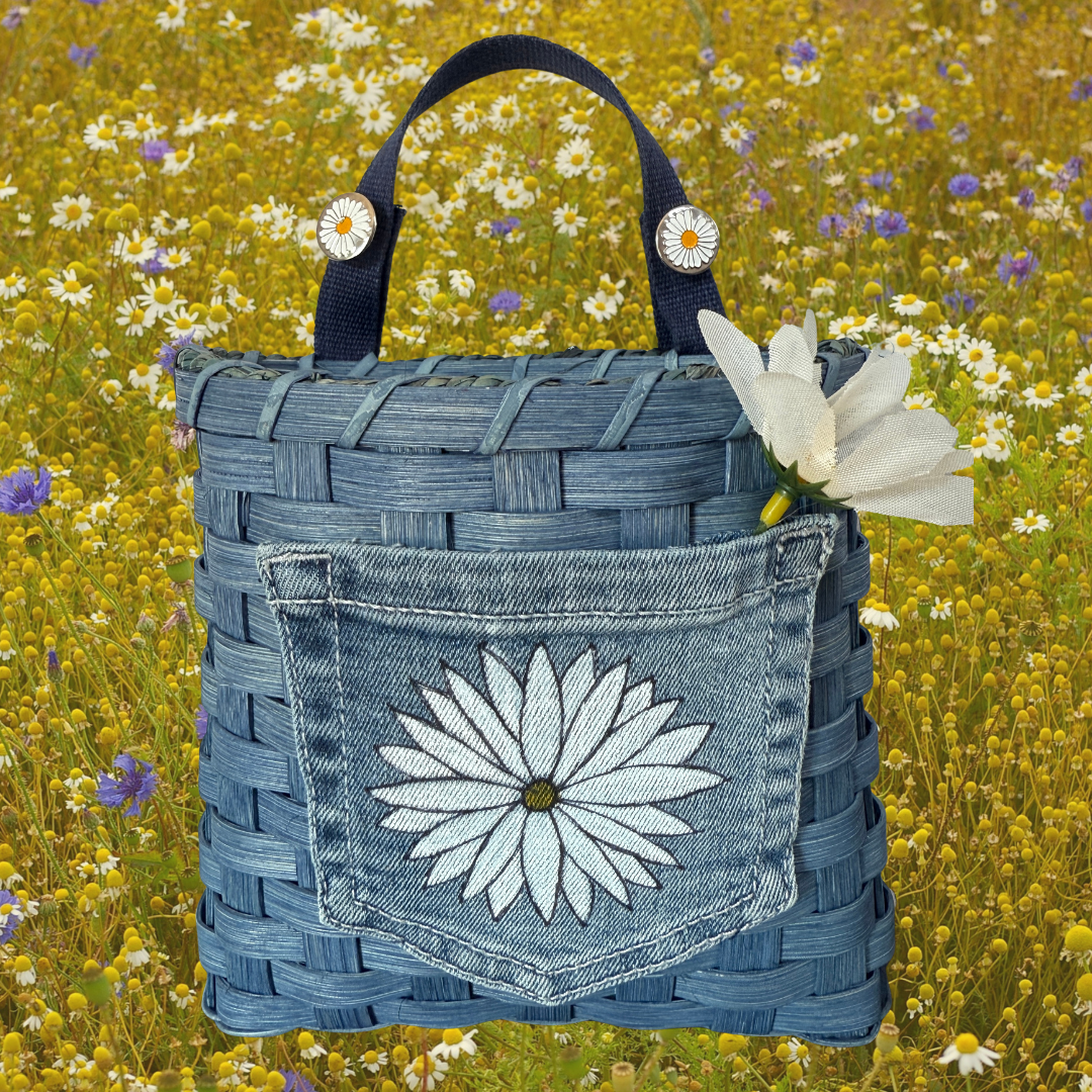 Join us for this hands-on workshop to create a charming wall-hanging basket featuring a denim pocket with a painted daisy. Embellishments include fabric straps and matching daisy rivets. This class is perfect for absolute beginners or anyone wanting to develop their basket weaving skills.