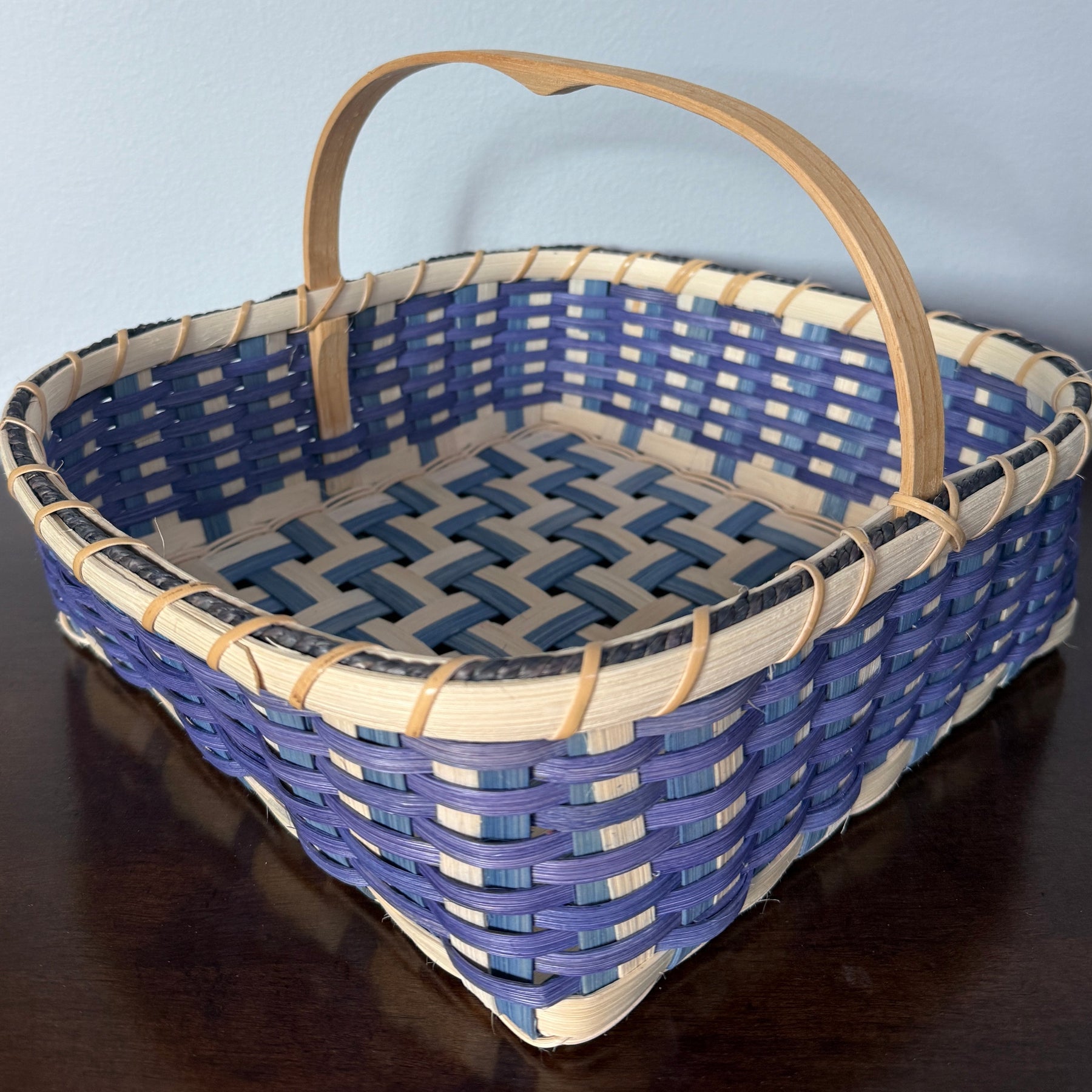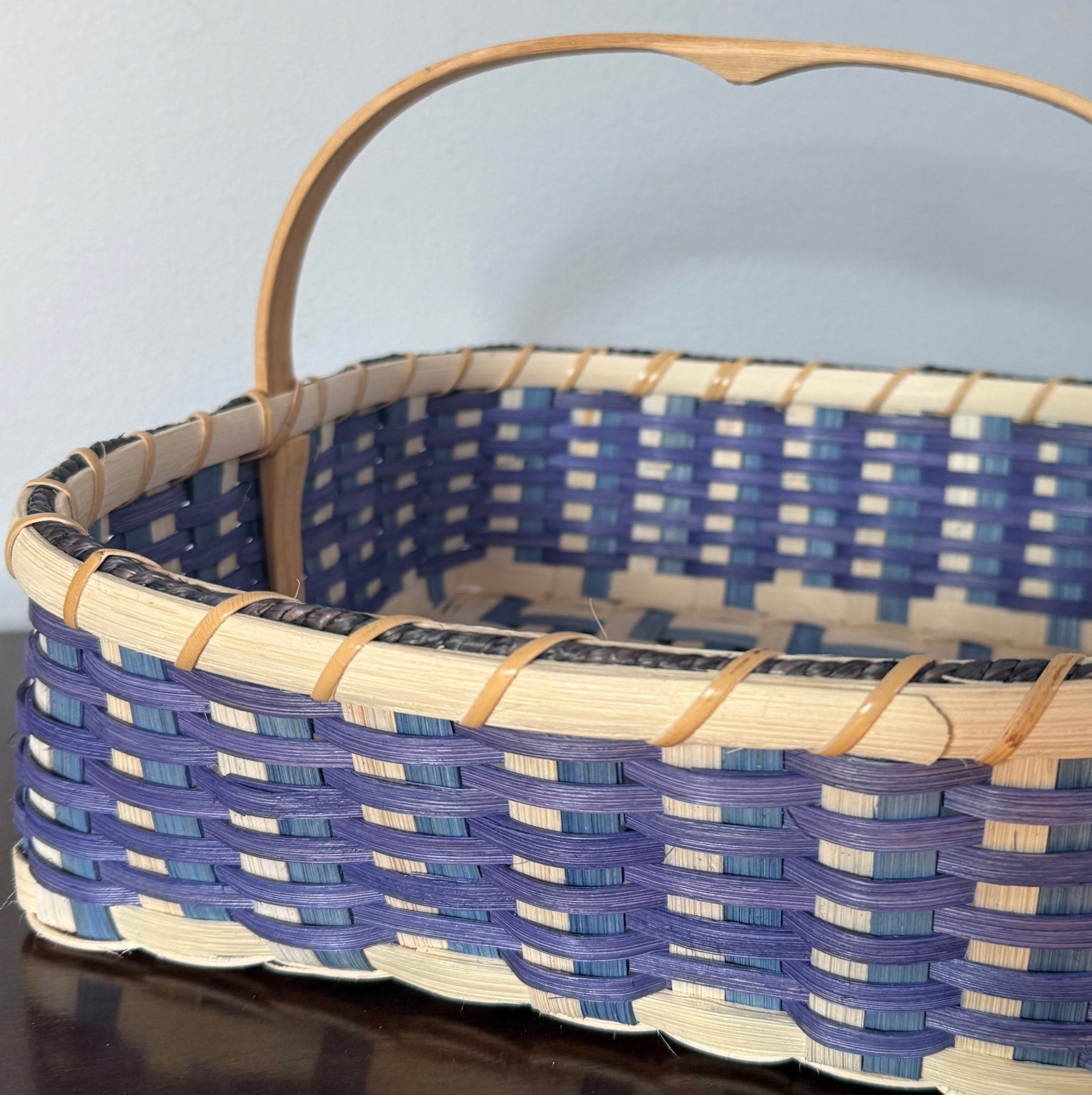 Join us for this hands-on workshop to create a beautiful and functional basket, perfectly sized for fruits and veggies on your countertop. Use this basket anywhere around the house to display collections, hold guest towels, collect craft projects, and so on! The two-color base spokes and contrasting weavers give this basket a unique “mock twill”diagonal weave look.