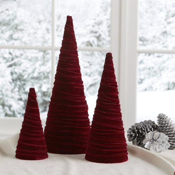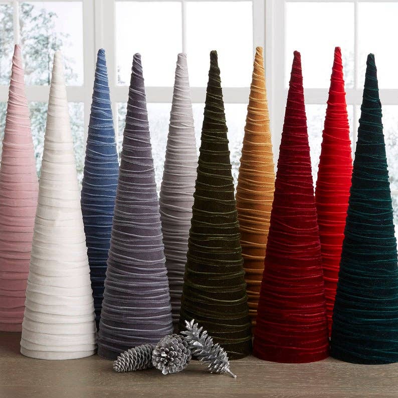 Celebrate the holidays with these elegant velvet trees. These colorful, tactile trees look great on their own or they can be added to other festive decorations to create an eye-catching centerpiece display or tablescape. Add this holiday decor to your mantle, dining table, a shelf, or where you want to add a luxurious touch to your home, in the rich look of velvet. They are beautiful, sturdy, and easy to store.